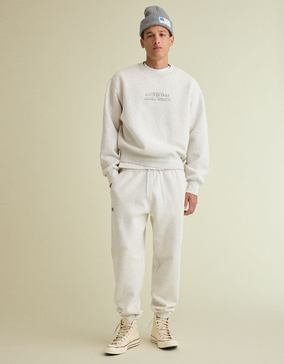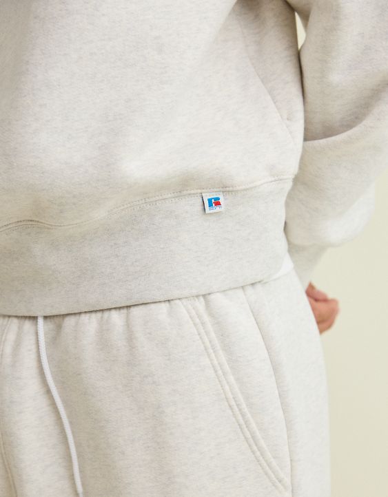 Russell and AE collaborated to revive the archival crewneck sweatshirt, featuring stenciled graphics and a modernized zip pocket for your phone and other essentials.
